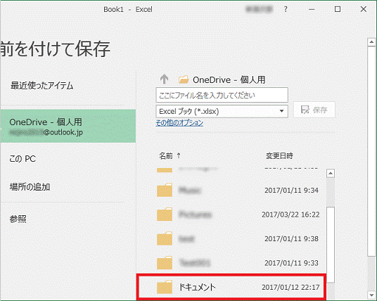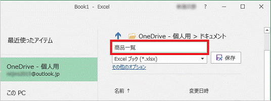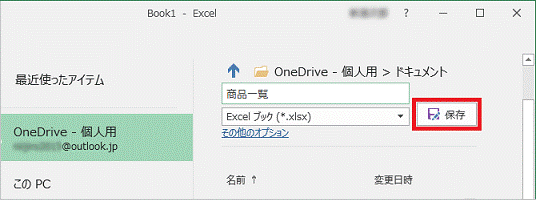 保存場所をクリックすると、従来のExcelと同じ「名前を付けて保存」の画面が表示されます。