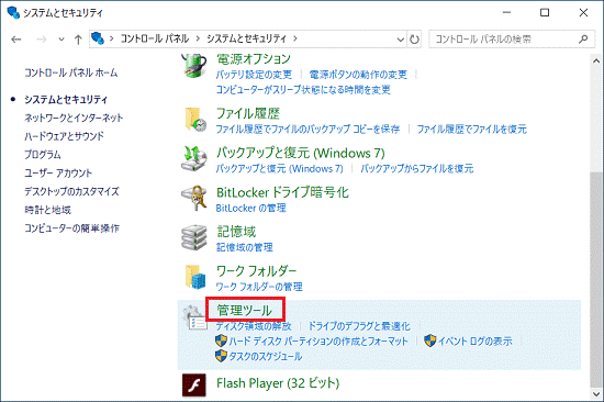 アドバイス「システムとセキュリティ」が表示されていない場合は、「管理ツール」アイコンをクリックし、手順4.に進みます。