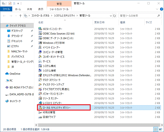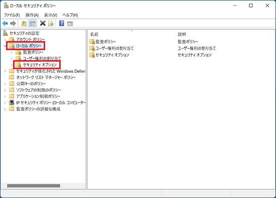 - 「ローカル セキュリティ ポリシー」が表示されます。