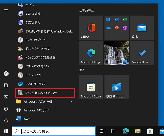 - 「ローカル セキュリティ ポリシー」をクリックします。