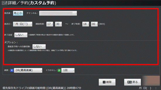(「詳細/予約(カスタム予約)」の場合) - 「詳細/予約」と表示される場合