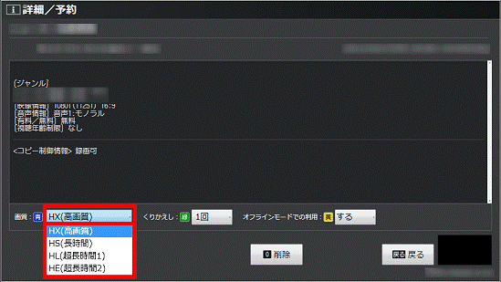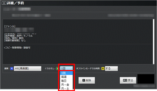 予約録画の内容を確認します。 - 「戻る」ボタンを押します。