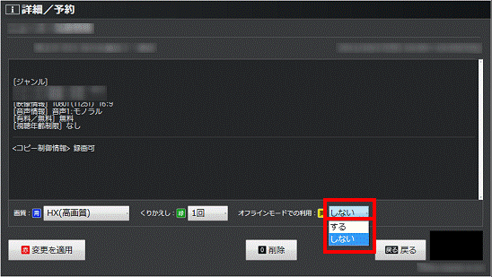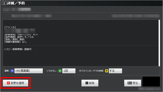 アドバイス予約録画の内容を変更していない場合は、「変更を適用」ボタンは表示されません。
