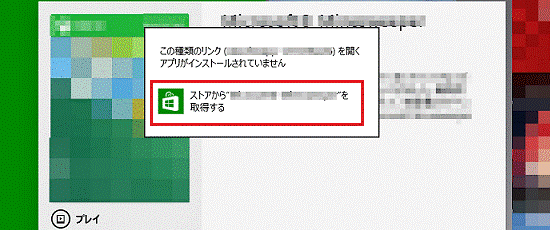 「この種類のリンクを開くアプリがインストールされていません」というメッセージが表示されたときは、「ストアから"(アプリ名)"を取得する」をクリックします。
