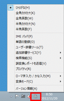 Windows 8.1/8は、通知領域に入力モードのボタンが表示されます。