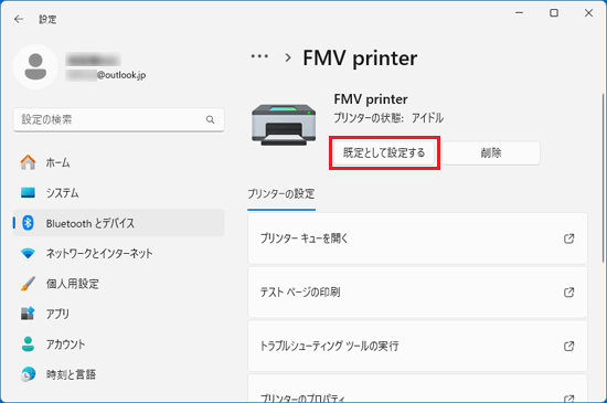 重要「既定として設定する」ボタンが表示されない場合は、手順4.の「Windows で通常使うプリンターを管理する」のスイッチが「オフ」になっていることを確認してください。