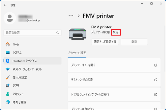 - 「プリンターの状態」が、「既定」になったことを確認します。