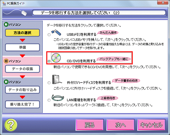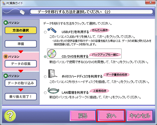 [PC乗換ガイド] パソコンの設定やデータをCD/DVDで移行する方法を教えてください。(2009年冬モデル〜2012年夏モデル)