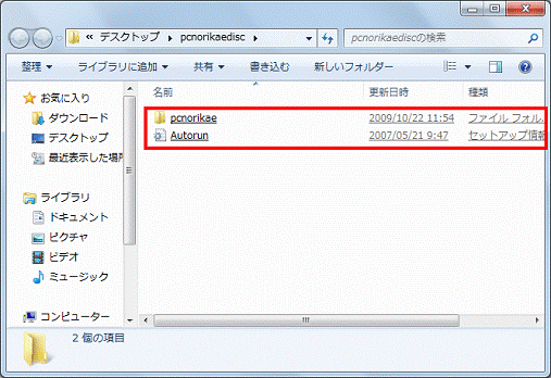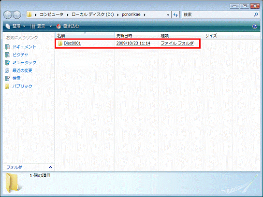 - CD/DVDへの書き込みが終わると、「pcnorikaedisc」フォルダーに戻ります。