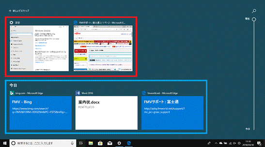 Windows 10のタイムラインには、実行中のアプリと、過去のアクティビティ(実行したアプリや、閲覧したファイル/ホームページなど)が表示されます。