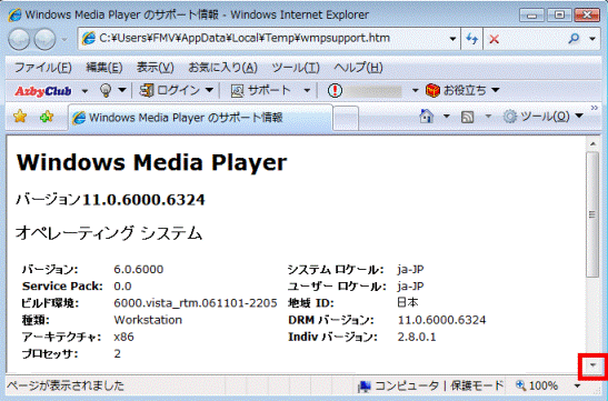 - 「Windows Media Playerのサポート情報」が表示されます。