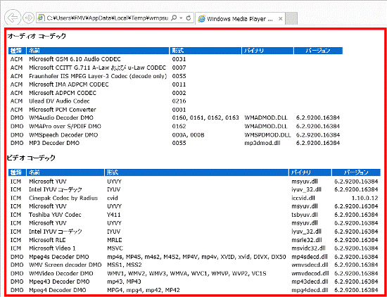 このパソコンにインストールされているCODEC(コーデック)を確認する方法を教えてください。