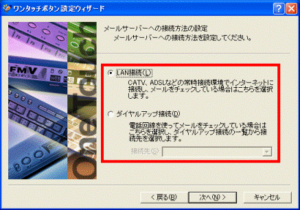 「LAN接続」、または「ダイヤルアップ接続」のいずれかを、お使いの環境にあわせてクリックします。