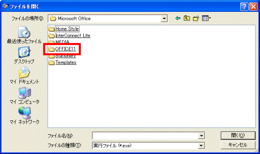 - Outlook 2003の場合:「OFFICE11」フォルダ