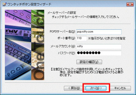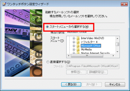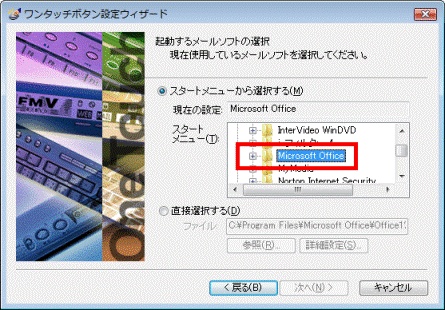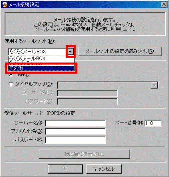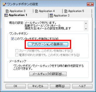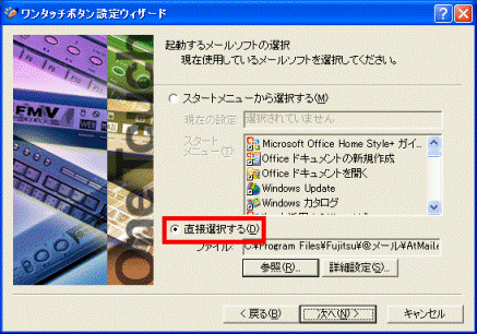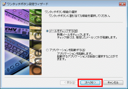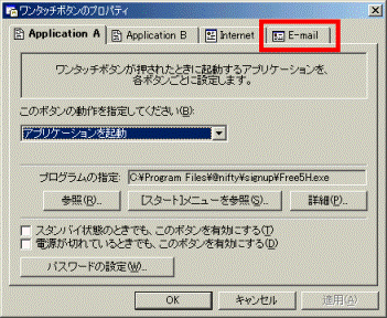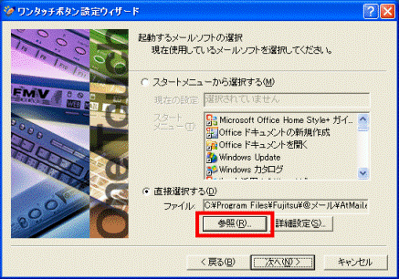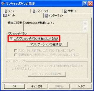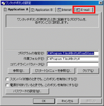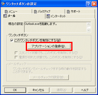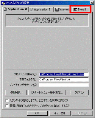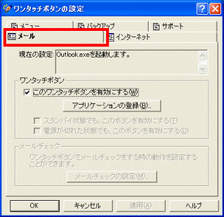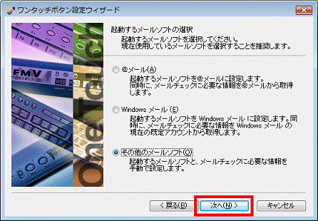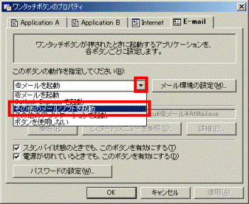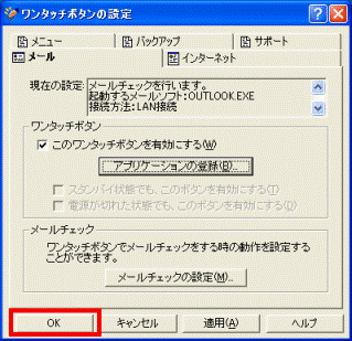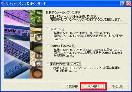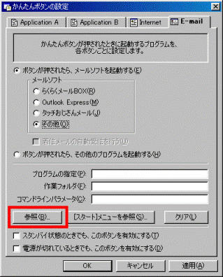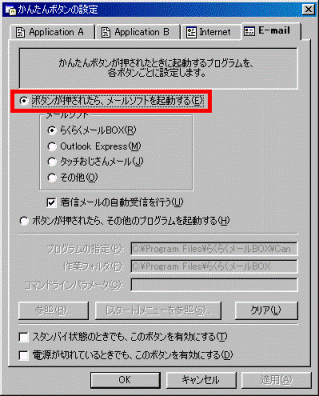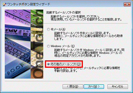 - 「その他」からメールソフトを選択した場合、「かんたんボタンの設定」の設定ではワンタッチボタンを押したときにメールの送受信を行うようにはできません。