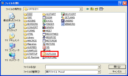 (Microsoft Office Outlook 2003の例) - Outlook 2003の場合:「OFFICE11」フォルダ