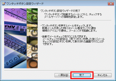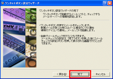 - 「ワンタッチボタン設定ウィザードの完了」と表示されます。