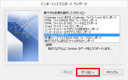 - 「インポート/エクスポート ウィザード」が表示されます。