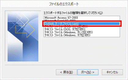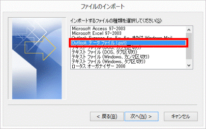 「Outlook データ ファイル (.pst)」をクリックします。