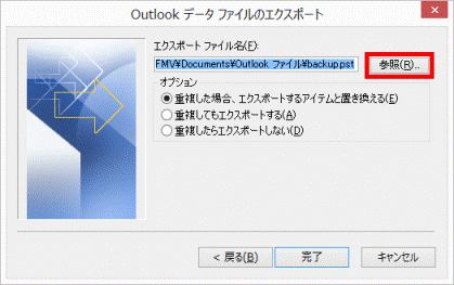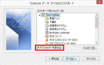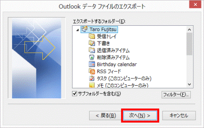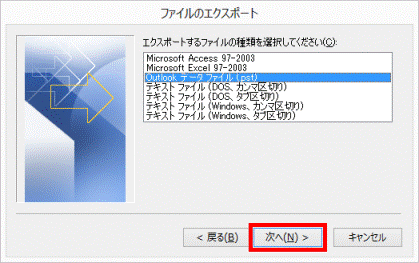 - 「Outlook データ ファイルのエクスポート」が表示されます。