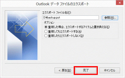 既存のデータが保持され、ファイル内の重複する情報は現在のOutlookフォルダーにコピーされません。