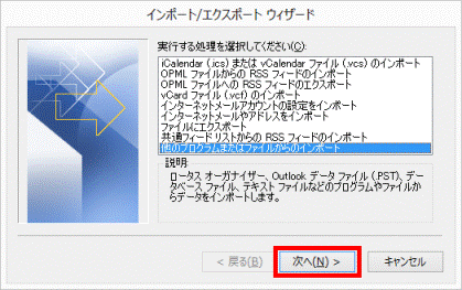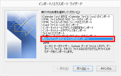 「他のプログラムまたはファイルからのインポート」をクリックします。