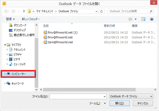 - 「Outlook データファイルを開く」が表示されます。