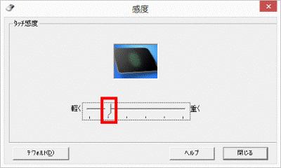 - 「タッチ感度」のつまみをクリックしたまま左右に動かし、調節します。