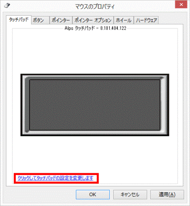 - 「クリックしてタッチパッドの設定を変更します」をクリックします。