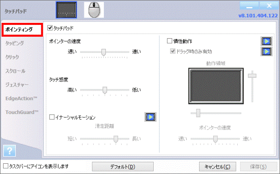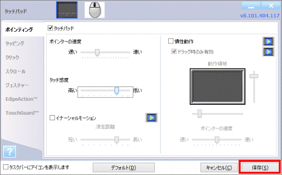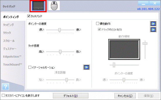 - 「×」ボタンをクリックし、「タッチパッド」を閉じます。