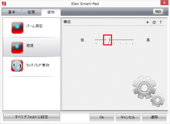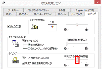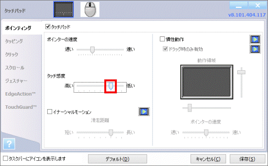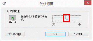 「タッチ感度」のつまみをクリックしたまま左右に動かし、調節します。