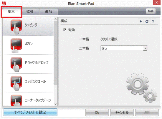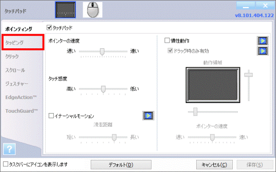 次の手順で、タッピングの感度を変更する、または機能を無効にします。