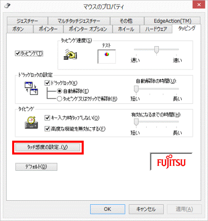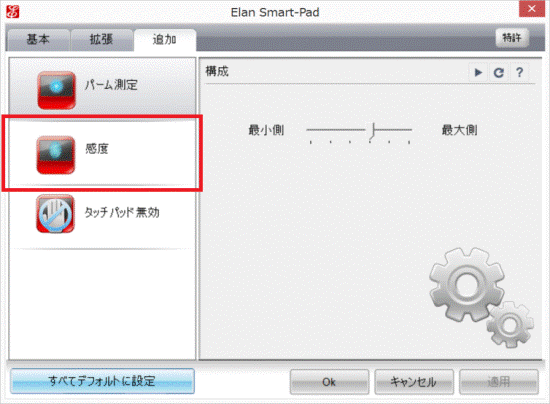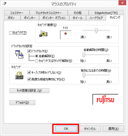 - 「OK」ボタンをクリックし、「タッチ感度」を閉じます。