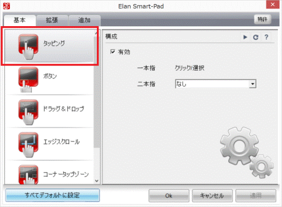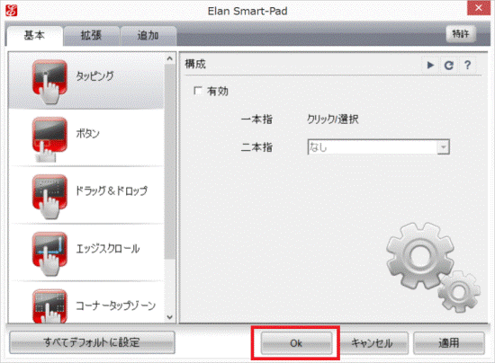 「タッピング」をクリックし、チェックを外してから、手順5.に進みます。