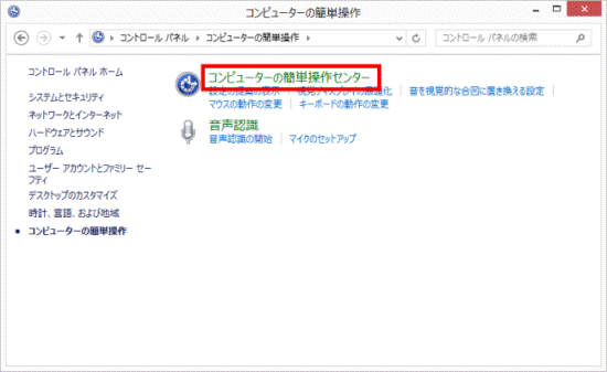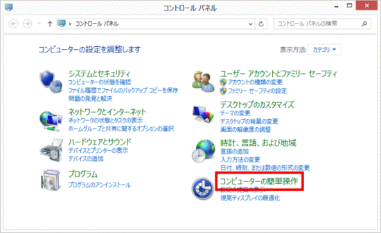 表示方法が「大きいアイコン」または「小さいアイコン」の場合は、「コンピューターの簡単操作センター」アイコンをクリックし、手順7.に進みます。