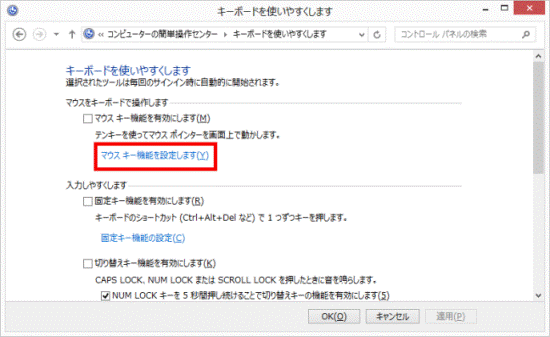 「マウスキー機能を有効にします」をクリックし、チェックを付け、次の手順に進みます。 - 無効にする場合
