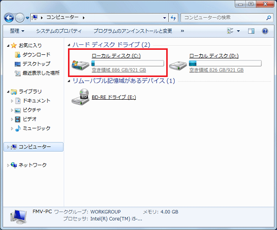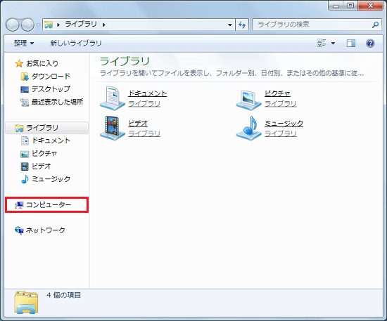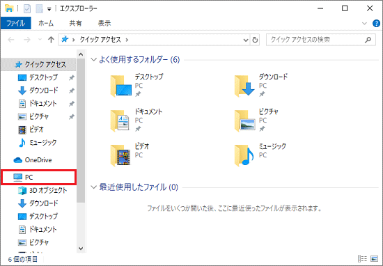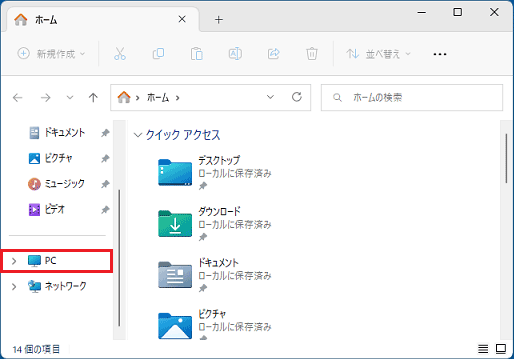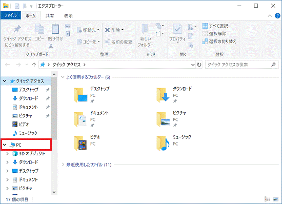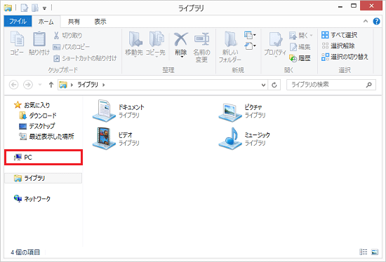 画面左側にある「PC」または「コンピューター」をクリックします。