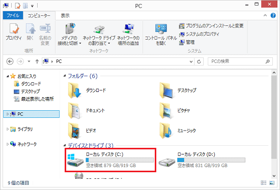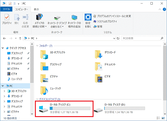 3. 「ローカルディスク(C:)」をダブルクリックします。