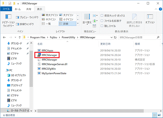 7. 「IRRCManager」(または「IRRCManager.exe」)をダブルクリックします。