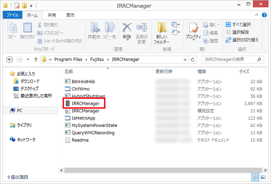 8. 「IRRCManager」(または「IRRCManager.exe」)をダブルクリックします。