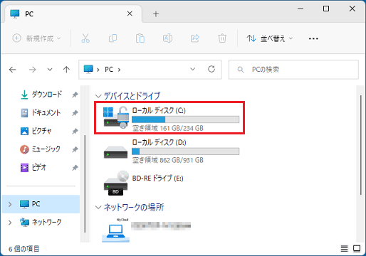 4. 「ローカルディスク(C:)」をダブルクリックします。