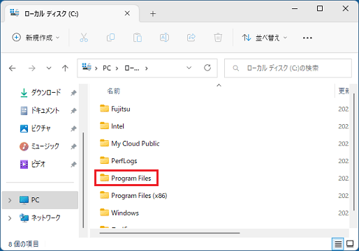 6. 「Fujitsu」フォルダーをダブルクリックします。