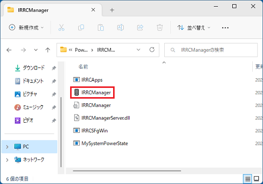 「IRRCManager」(または「IRRCManager.exe」)をダブルクリック