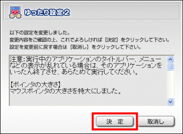 変更された内容を確認して、「決定」ボタンをクリックします。