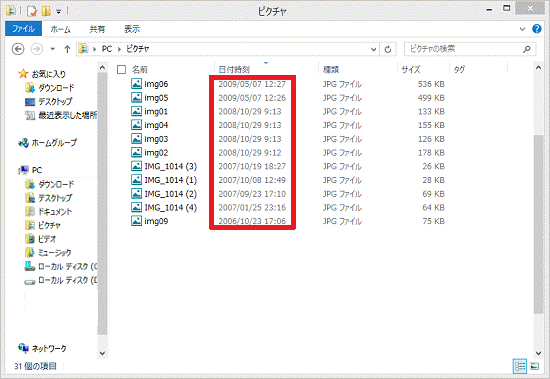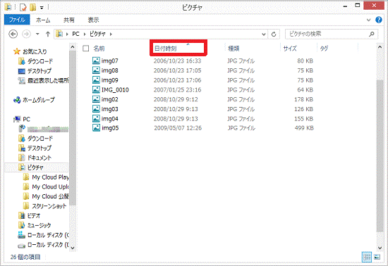 [Windows 8.1/8] フォルダーに表示されているファイルやフォルダーを並び替える方法を教えてください。