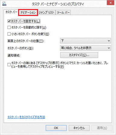- 「タスクバーとナビゲーションのプロパティ」が表示されます。