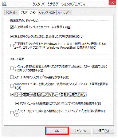 - 「スタート画面への移動時にアプリビューを自動的に表示する」をクリックし、チェックを付けます。