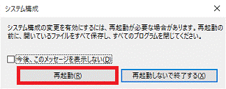 - 「システム構成の変更を有効にするには、再起動が必要な場合があります。」と表示されます。