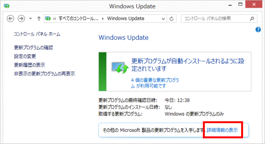 - 「取得する更新プログラム」の下にある、「詳細情報の表示」をクリックします。