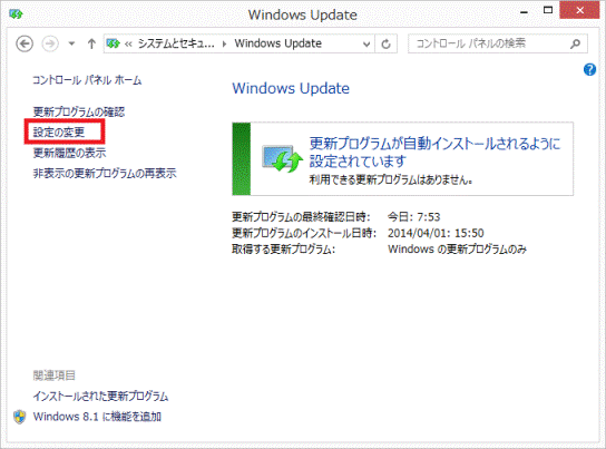 以降の手順を実施する必要はありません。 - 「設定の変更」が表示されます。